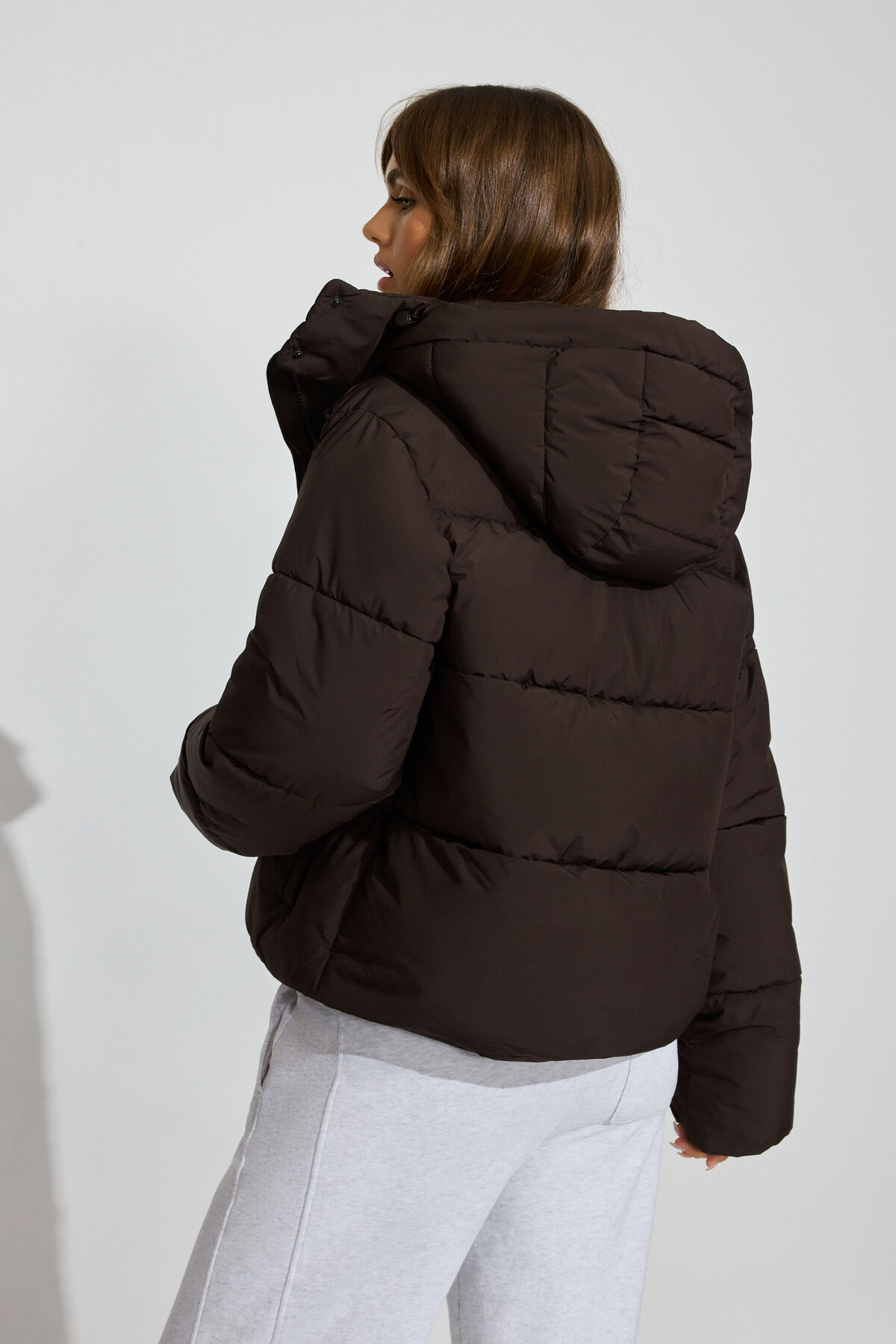 Perfect Puff Jacket Brown women – Bring the heat in this perfect quilted puffer. Features Detachable hood with bungee-style drawstring Front zip closure with snap button placket Welt pockets with snap closure Cozy pocket lining for warm hands Storm rib cuffs to keep wind out Adjustable bungee-style drawstring at hem Lined Size & Fit Fit: Regular Length: Regular The model is wearing size S Materials & Care Water-repellant fabric Content: 100% polyester Care: Dry clean only Imported