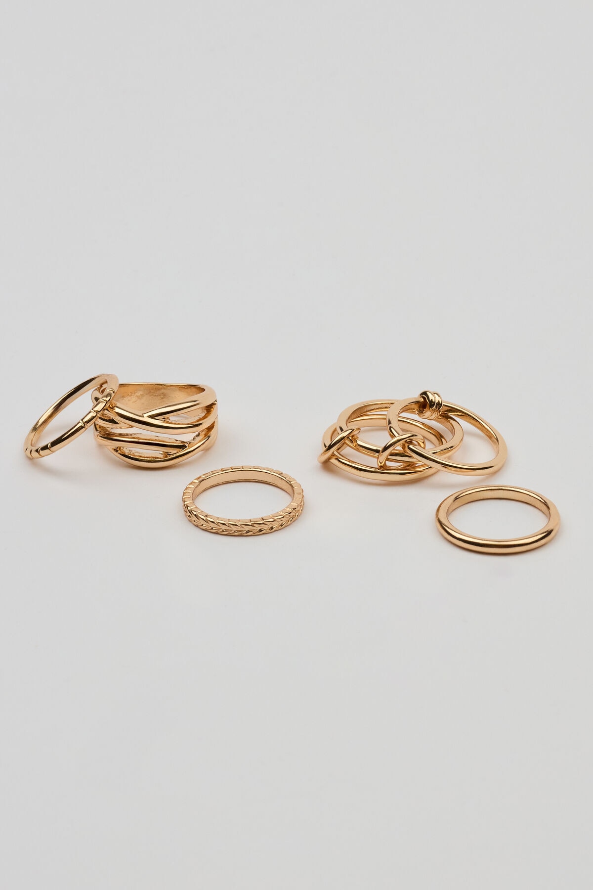 Set of 7 Modern Rings Yellow women – Ring me up! Features Set of 7 rings Stackable Metal costume jewelry All jewelry is lead, nickel, and cadmium free Imported