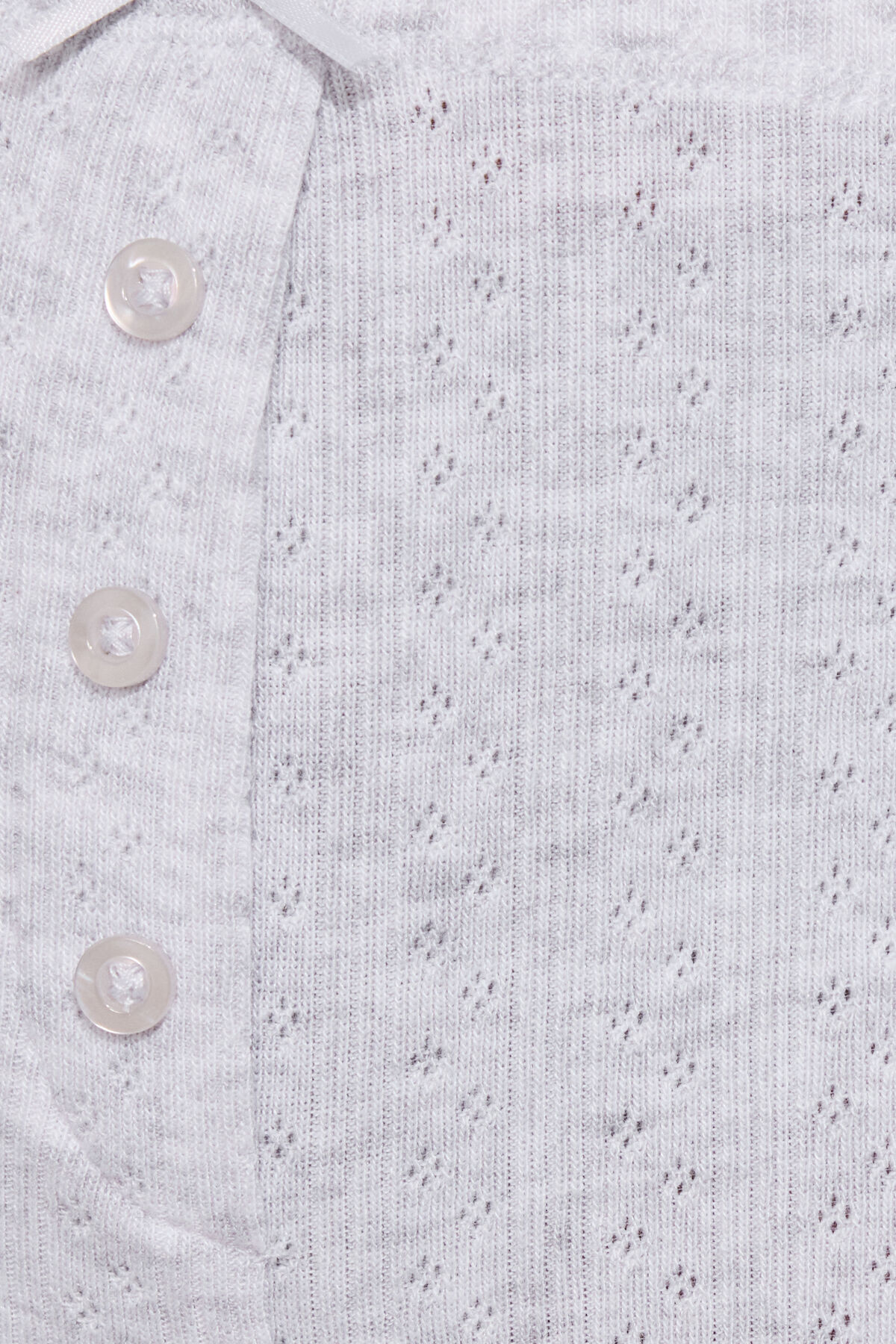 Tiny Pointelle Lettuce Edge Shorts Gray women – Too hot to go to bed! Features Semi-sheer Pointelle detailing throughout Bow appliqu é at front waistband Mock button fly Lettuce edge hem Stretchy Size & Fit Length: Mini Rise: 8.5″ inseam:=”” 2″=”” model=”” is=”” wearing=”” size=”” s=”” materials=”” &=”” care=”” content:=”” 60%=”” recycled=”” polyester,=”” 34%=”” rayon,=”” 6%=”” spandex=”” care:=”” hand=”” wash,=”” cold=”” imported”=”